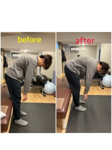 施術後はスムーズに前屈でき、可動域が大きく改善しています。